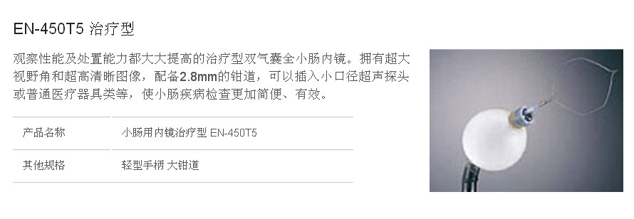 觀察性能及處置能力都大大提高的治療型雙氣囊全小腸內鏡。擁有超大視野角和清晰圖像,配備2.8mm的鉗道,可以插入小口徑超聲探頭或普通醫療器具類等,使小腸疾病檢查更加簡便、有效。