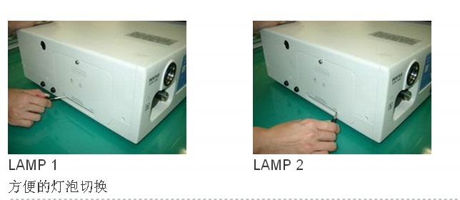 EKP-150C配備的高輝度鹵素燈泡是高性價比的光源,而且還有一枚備用燈。兩枚鹵素燈可以很方便的切換,這樣,在手術中即使一枚鹵素燈出現問題,也可以立即切換到另一枚,保證手術的順利進行。