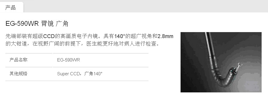 先端部裝有CCD的高畫質電子內鏡。具有140°的超廣視角和2.8mm的大鉗道,在視野廣闊的前提下,醫生能更好地對病人進行檢查。