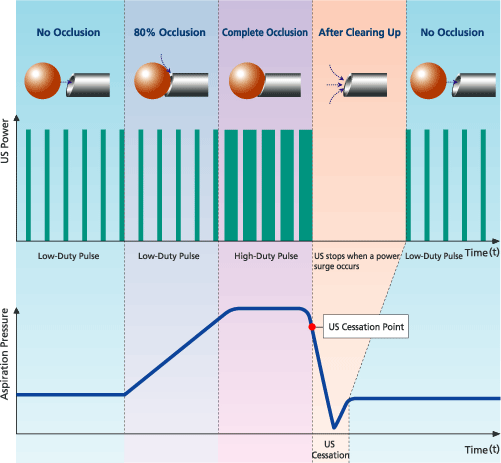對于不同硬度的水晶體核,進行自動超聲波控制,發生前房涌動時超聲波自動停止,防止后囊破裂。